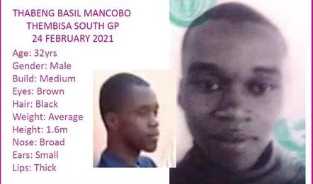 Thembisa SAPS is looking for Thabang Basil Mancobo (32) who was last seen on February 24 at about 9.30am in Thembisa. Mancobo is medium-built with brown eyes, black hair, average in weight and 1.6m in height.