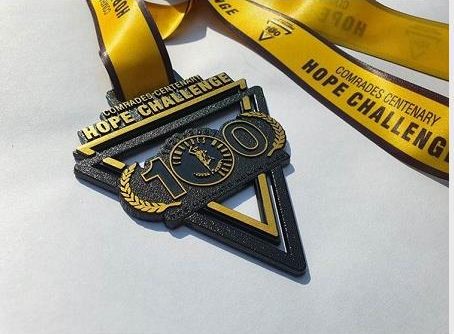 Finishers in the Comrades Centenary Hope Challenge will receive a beautiful gold and black medal, complete with a distance bar to denote the mileage done, be it the 5km, 10km, 21.1km, 45km or 90km distance.