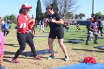 The crowd committed themselves to the workout session to keep fit, healthy and maybe shed a few kilos, but mainly it was to honour the women and children at the welfare.