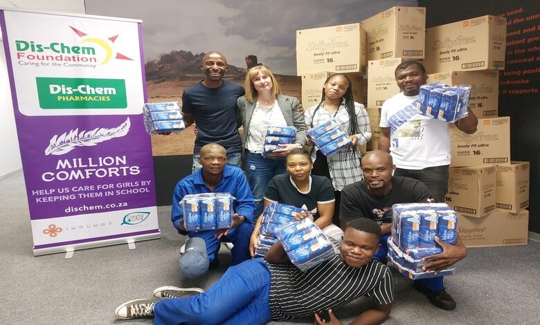 As a result, the Dis-Chem Foundation and Million Comforts recently delivered a large shipment of sanitary towels to the Imbumba Foundation for distribution through their Caring4Girls Programme. The main objective of Caring4Girls is to provide education on puberty and menstrual hygiene to underprivileged girls and support them with sanitary towels for a minimum period of one year.