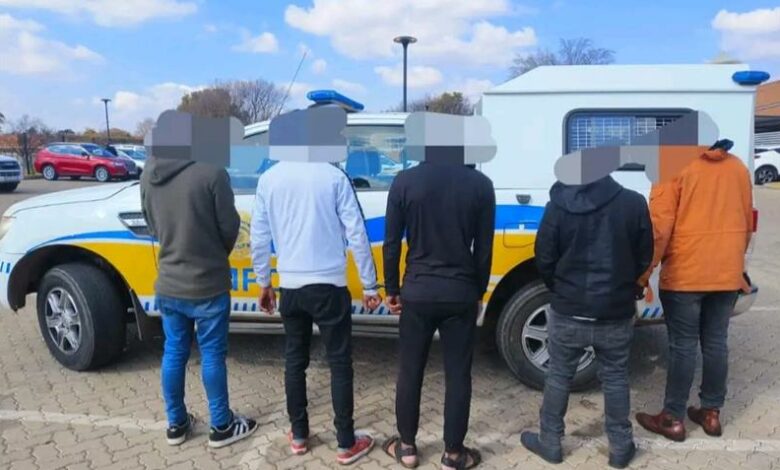 All five suspects were detained at Kempton Park Police Station and face charges of possession of stolen property and possession of dangerous weapons.