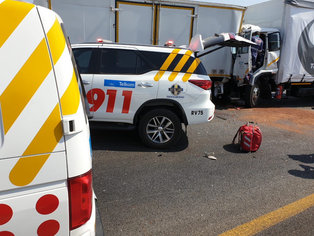 Three trucks collide on R21; one driver airlifted to hospital