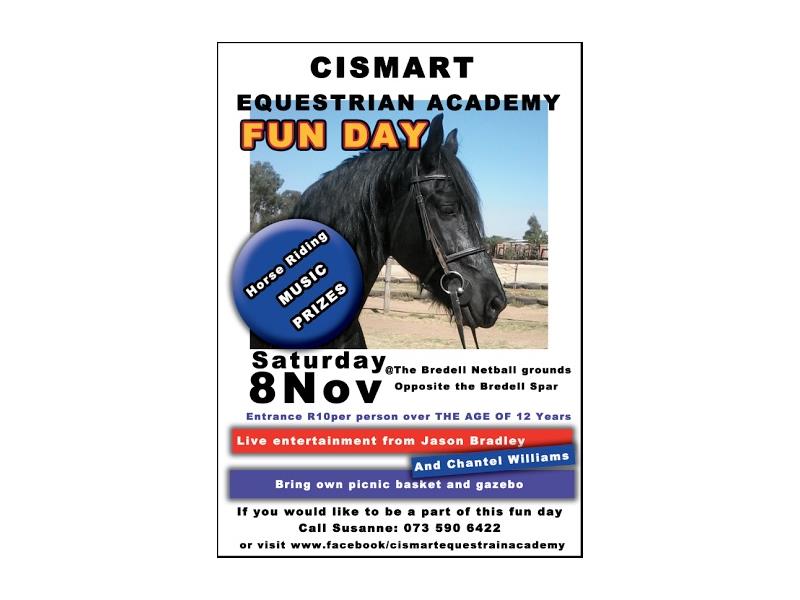 CISMART Equestrian Academy will host a fun day on Saturday, November 8 at the Bredell netball grounds opposite Bredell Spar on the corner of third Avenue and Sixth Road.