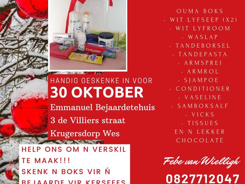 ‘n Skoenboks vol bederf vir bejaardes dié Kersfees