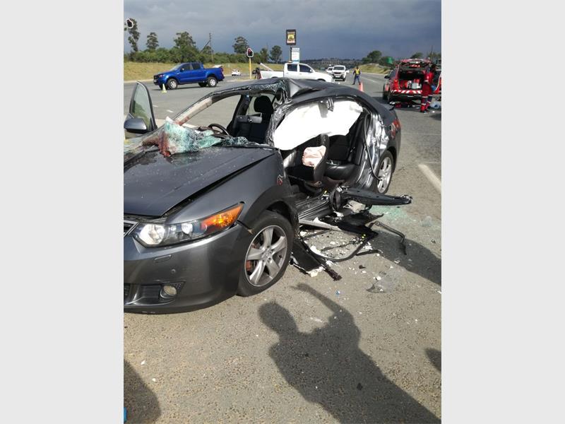 Motorcycle and car collide, pillion passenger found 50 metres from crash