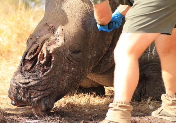 SANParksThe first sign of the scene of a crime is the vultures circling above. We know it’s a rhino carcass,…
