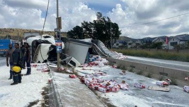 Flour everywhere after truck overturns on R28