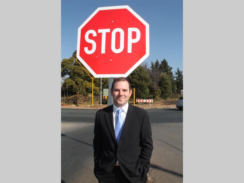 Municipal'n Vermiste stopteken is op die hoek van Industrial- en Rustenburgweg vervang, maar diƩ pad se strepe ontbreek.