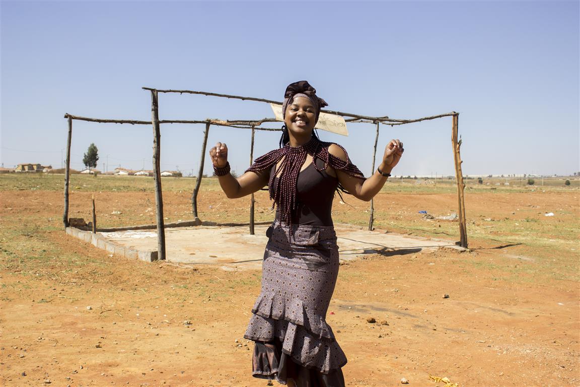 “I wear traditional clothes, but I modernise it,” Nthabiseng said as she shows off the ensemble of dark wooden beads draped over her skin. For her, being seTswana is part of her.