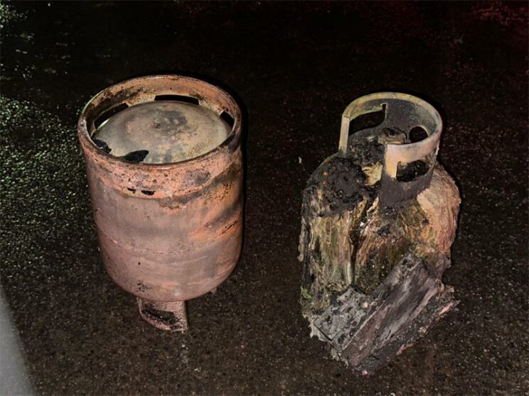 “On inspection, we found that the heat from the fire seems to have caused the insulation of the air conditioning unit to burn through the wall and ignite the air conditioner inside the building that melted and dripped on a gas heater, igniting the gas in its pipes and burning the cabinet that had a second 9kg cylinder in it,” he explained.