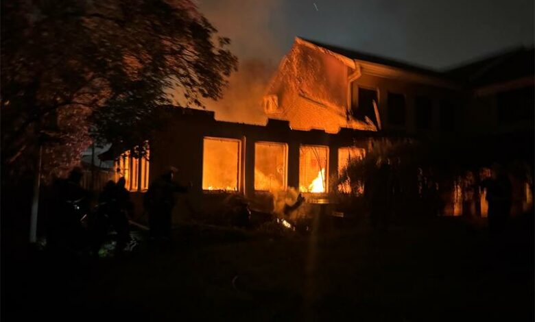 West Rand Emergency Services’ Regional Commander Gerhard Nieuwoudt said the fire appears to have started in the kitchen area of a hairdressing business on the ground floor, where the roof had collapsed before their arrival.