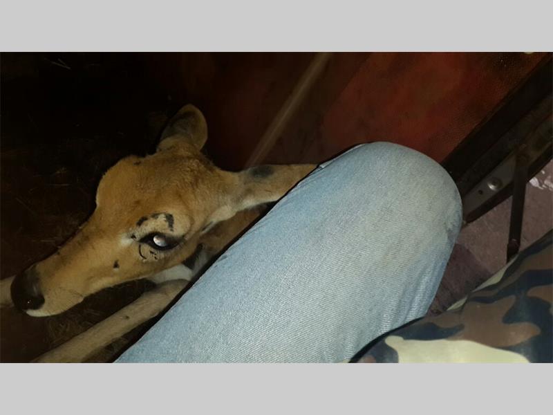 Local news'n Paartjie word verras met 'n laataandbesoek deur 'n rooiribbokooitjie wat in Rangeview rondgedwaal het.