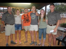 60m Randslag geweer 13 jaar en jonger van die vyfde-tot die eersteplek: Gunther Katzke, Wian du Toit, Campbell Mclean, Joubert Fleischmann, Chantell Meyer.