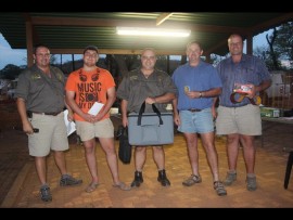 Handwapen Randslag senior groepering van die vyfde-tot die eersteplek: André Jonker, Joseph Fourie, Riaan du Plessis, Francois Malan, Hannelie Goosen.