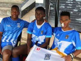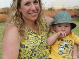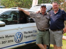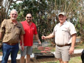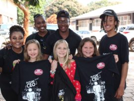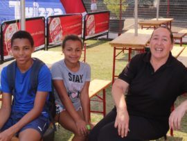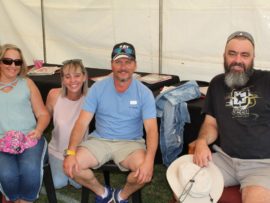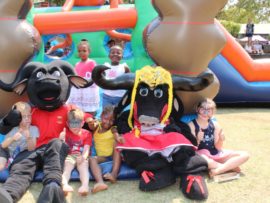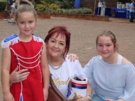 Hier sit ān paar jong feesgangers saam Ben En Toekie, Ben Vorster se twee gelukbringers.