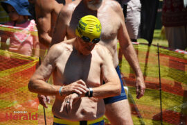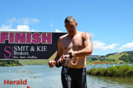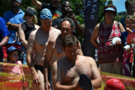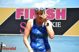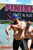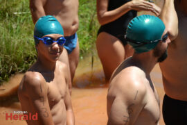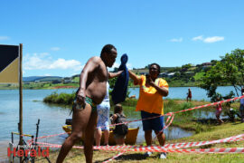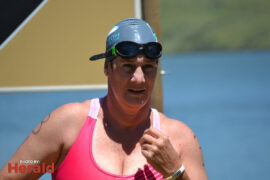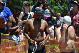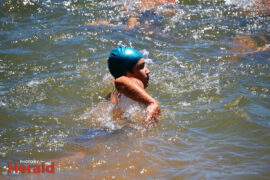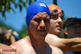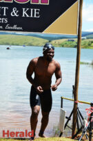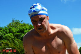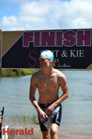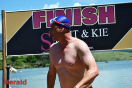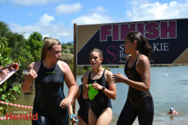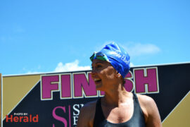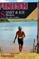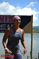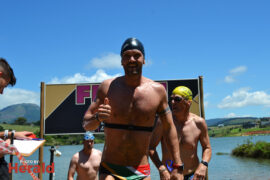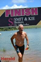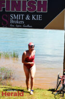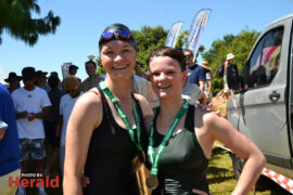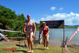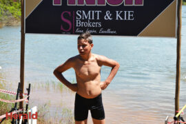 In the 3000m open water swim Dylan Kamstra took first place in the men’s division with a time of 49:53 and Caroline Koll took first place in the women’s division swimming the 300m in 50:54. Dante Botha took second place in the women’s division with a time of 51:01. Stephen Trickett took second place in the men’s division with a time of 58:47. Joshua Shoebotham took third place in the men’s division with a time of 1:00:27 and HannaLouise Myburgh took third place in the women’s race with a time of 1:09:47. In the 500m open water swim Chignet Davel took first place followed by Leah Stewart and Hendré Venter.