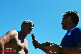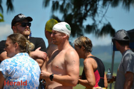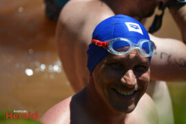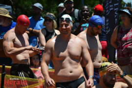 In the open category (ages 14 to 31) Connor Albertyn took first place in the men’s division with a time of 20:53. Jean-Marie Swartz won the women’s division with a time of 23:50. Jenny Zhang took second place in the women’s division swimming the mile in 23:58. Armand Burger van Vuuren took second place in the men’s open division, swimming the mile in 24:13. Hendus Janse van Rensburg took third place with a time of 25:02.
