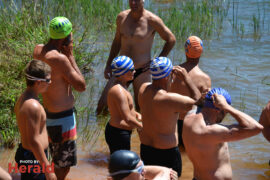 The sunny weather and dam filled over 100% by recent rains ensured that the open water swimmers enjoyed the event. In the mile women’s 31+ category Pia Stewart took first place swimming the mile in 23:44. Megan Albertyn took second place with a time of 27:46 and Tarina van Zyl took third place with a time of 29:34. Rozaan Korff took first place in the girls’ u.14 category with a time of 25:46. Liandri