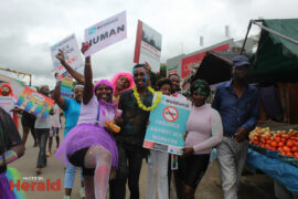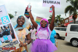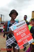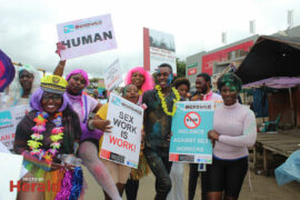 They took to the streets exercising their right to demonstrate with songs such as ‘My mother was a kitchen girl and my father was a garden boy that is why I’m a sex worker’. The group of about 50 was also displaying placards with ‘Sex work is work’, ‘Stop violence against sex workers’, and ‘We are equal’.