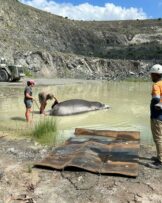 Eugene Troskie, PNHF director says they received a request from the Limpopo Department of Economic Development, Environment and Tourism (LEDET) to assist with relocating a hippo bull that was at Foskor mine last week. “The hippo was spotted in a pit of one of the mines in Phalaborwa in a small dam. It was a high-risk situation for people and the hippo. We had to get him out of there as quickly as possible. “Together with LEDET and veterinarian Dr Rita Piso from Mangata Veterinary Services and Foskor staff, we successfully darted and moved him to the Olifants River.