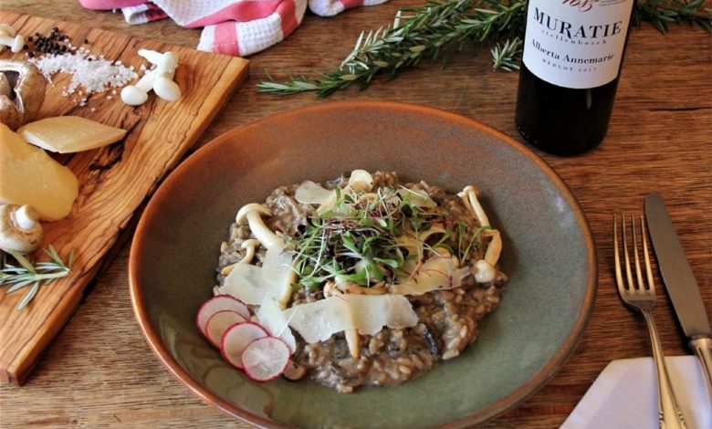 To enjoy it at its best, we’re going to serve it alongside a dish created by Annatjie Melek (foodie legend and chatelaine of Muratie), who shared her Mushroom Risotto recipe with us. And to make things extra special, before you tuck in, read the story behind the wine (all Muratie wines have a story worth sharing).