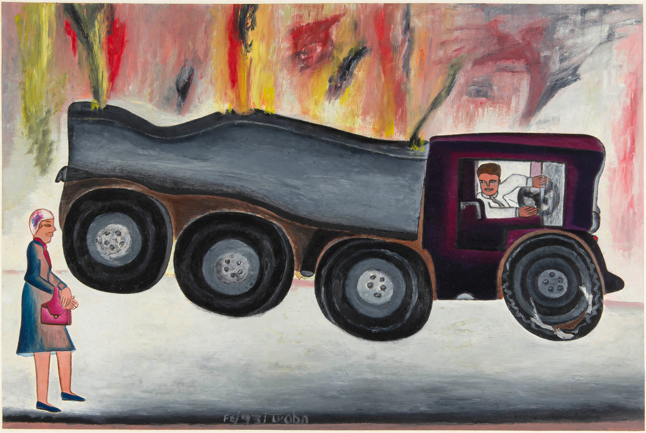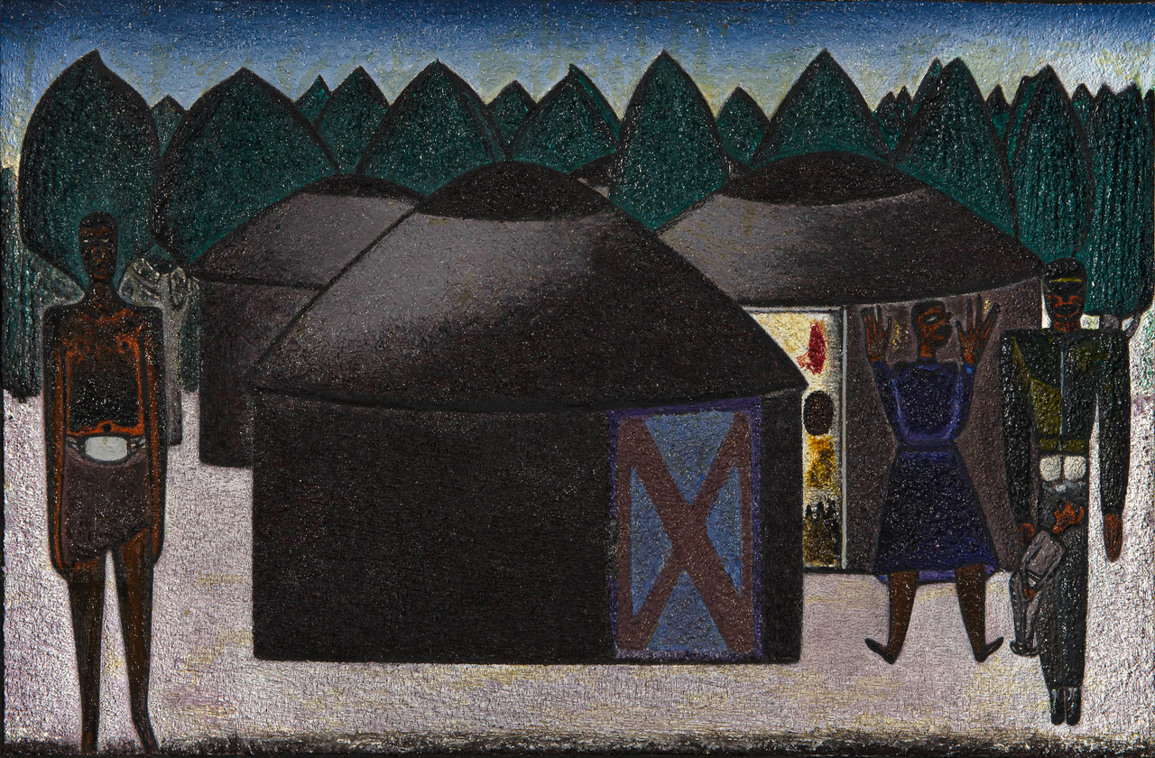 Thoba was born in 1951 in Sophiatown, Johannesburg, four years before the forced removals in 1955. Then prime minister D F Malan sent in two thousand armed policemen, who violently evicted the 60 000 Black residents from this black cultural hub. Although the artist was only a toddler at the time of the evictions, the event must have had some influence on his subject matter, if only on a subconscious level.