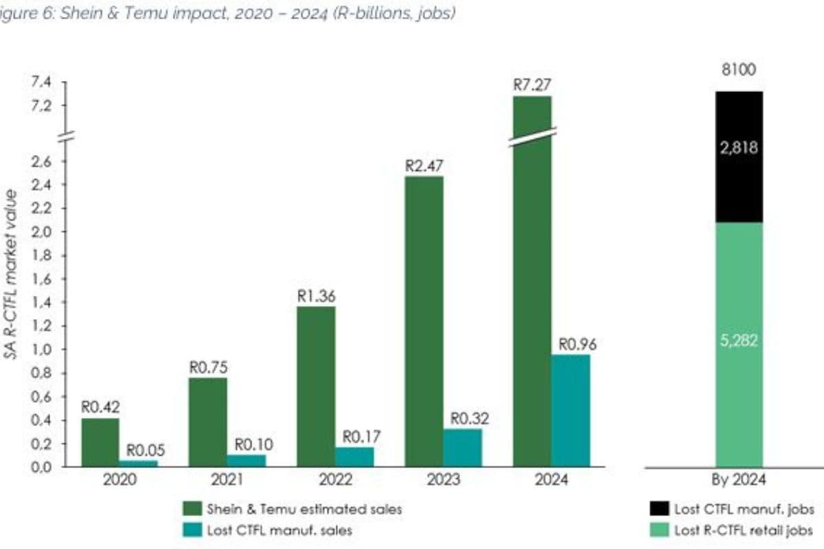 The study estimated the impact of Shein and Temu on South Africa’s retail, clothing, textile, footwear and leather sector (R-CTFL).