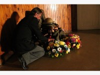 The memorial where fallen soldiers were honoured with flowers and memorial plates.