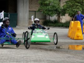 • Class A: Novices and first-time car builders. Pupils turning 14 in the year may enter. Privateers may enter too. This class is intended for newly built cars. Only SLA (sealed lead acid) batteries are allowed. Total spent on the vehicle is not to exceed R9 000. To be part of the main prize you need to do the presentation.