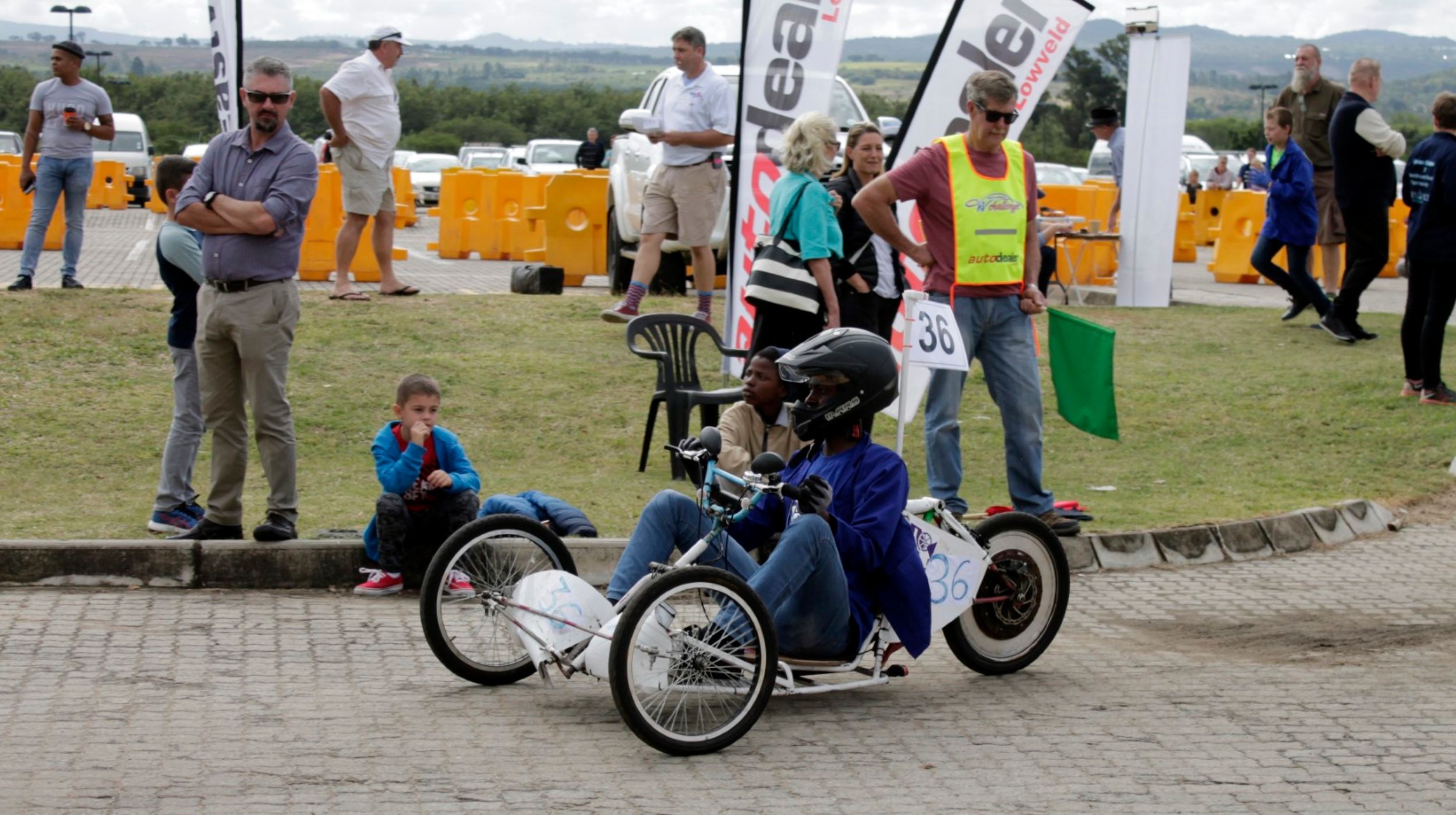 An interesting addition to the day was the electronic vehicle designed and built solely by Benjamin Phiri. This using only recycled and predominantly found items. Aptly named MP, it took a year to build and is a miniature version of a sedan, albeit with plenty of air-conditioning, as Dave Walters so fittingly said. This little car’s doors open and close, the bonnet opens and has a stand to keep it up and the lights go on and off.