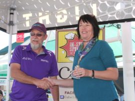 Bigfoot Express Freight receive their prize – MC’s award for best activity – from Lesley Ings