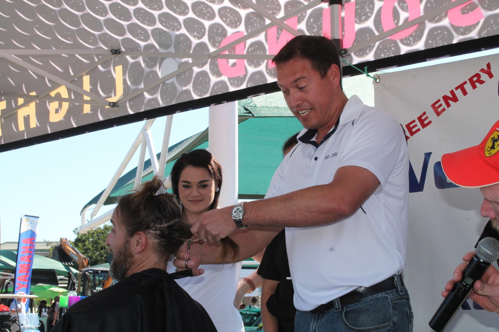 Garden City Motors bought the rights to Nic’s hair – and not a single tear was shed. No man!