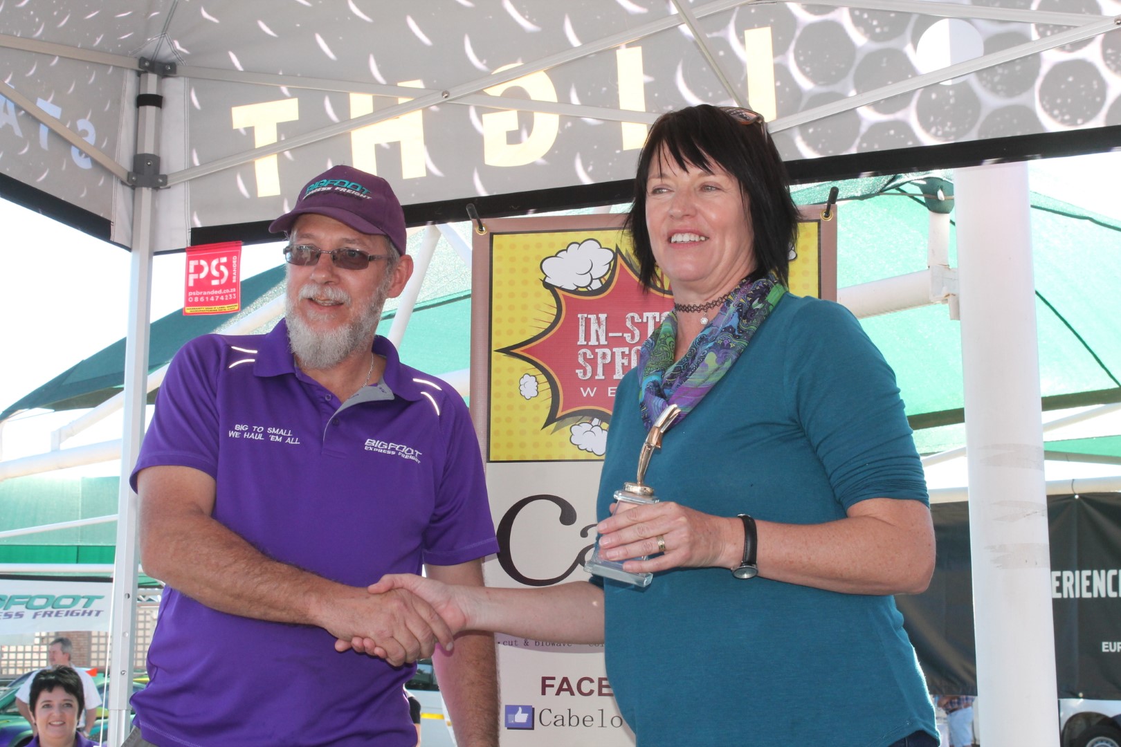 Bigfoot Express Freight. They ship anything, even redundant family or colleagues – anything really… They also won the MC’s award for their activity on the stand