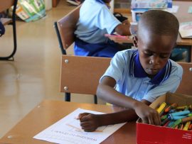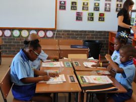 These little ones settled in quite quickly and got comfortable at their assigned desks to colour in in their books. The young learners in these classes did not seem to be missing their parents, and instead were excited and caught up just fine.