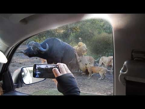 VIDEO: Lions attack buffalo next to vehicle