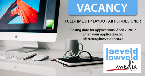 Local newsLowveld Media, a dynamic, award-winning media house, is looking for an enthusiastic, passionate full-time DTP layout artist/designer to join its…