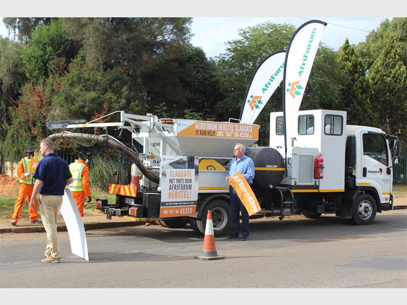 Van die gate is baie gevaarlik vir motoriste wat publieke en privaat eiendom in gevaar stel en daarom is dit as deel van die selfdoen-inisiatief geloods wat aansluit by AfriForum se nasionale slaggatmaand.”