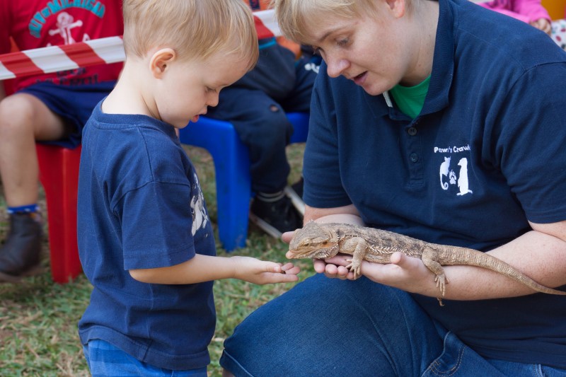 Their first visit was to Kwetternes Kleuterskool in Komatipoort at the end of May. At first, the children were a bit hesitant to touch the animals, especially the reptiles. This changed after Vanilla, the bearded dragon, ate a worm off a learner’s hand.