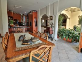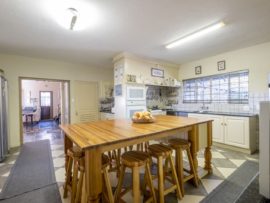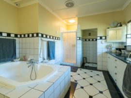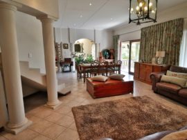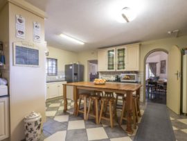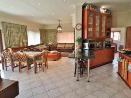 There is a guest suite downstairs and upstairs features 3 bedrooms with two bathrooms. The home has a lot of potential as it has large staff quarters, as well as 2 outside rooms which can be utilised as office or gym, three garages with an adjoining room which can be used as store or butchery. The bonus of this home is that it also has two 1 bedroom cottages which ensures a nice rental income.