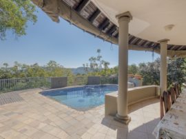 Spacious open plan reception rooms and a well equipped kitchen provides access to a covered patio. The large main bedroom with an en-suite bathroom, walk-in closet and private study is separate from the other 2 bedrooms. This home has a 120 sqm entertainers room with its own bathroom and kitchen and can easily be converted into a flatlet. A double garage completes the perfect picture.