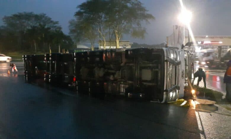A truck driver sustained minor injuries when his vehicle overturned on the R40 in Riverside, Mbombela, on November 25.