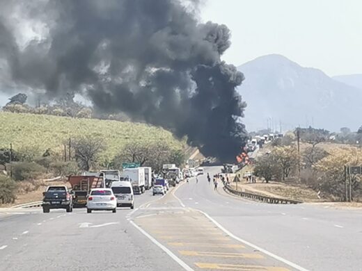 A truck driver burnt to death and five others were injured. It is still not yet clear how long the road will be closed.