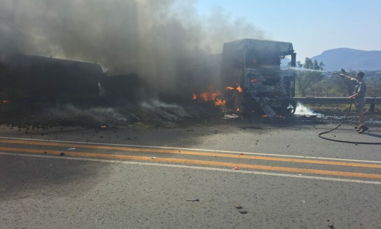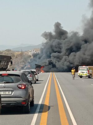 Van Reenen said the driver was burnt beyond recognition and declared dead on the scene. The driver of the second truck was treated for minor injuries only.