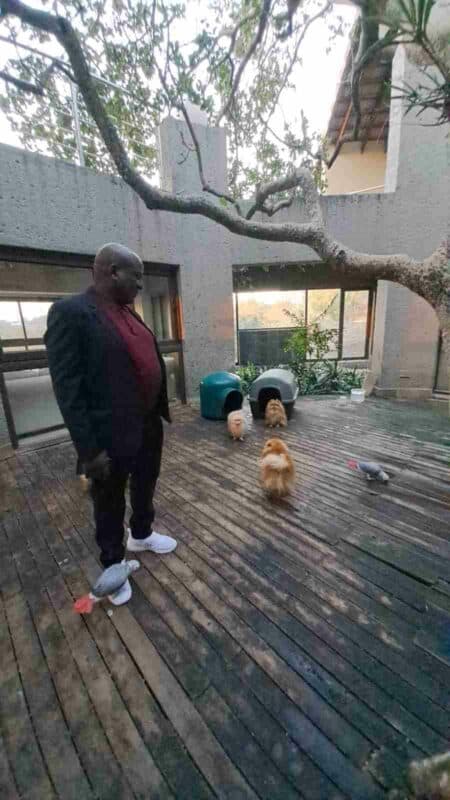 “I’m delighted to have Zippy back,” Ntuli told Lowvelder, proudly showing the bird in an open enclosure with two other African greys and several toy pom dogs. “If it wasn’t my bird, I wouldn’t have taken it. Look how happy he is.”