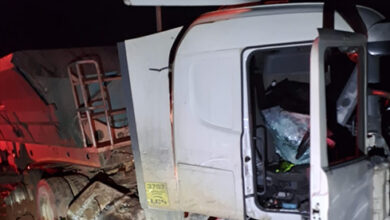 Heavy articulated truck up in flames after collision near Lydenburg