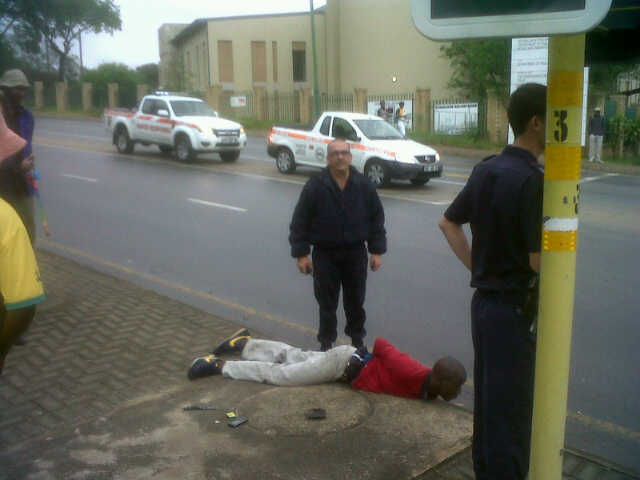 CrimeHy kon sien hoe 'n man haar met 'n mes dreig en probeer om haar selfoon af te vat