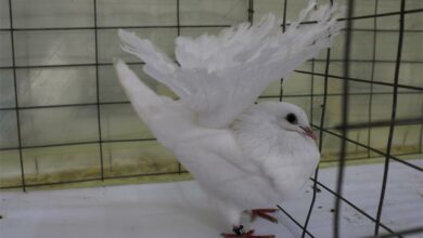 Voëls van verskillende vere pronk by i’langa Mall vir sierduifskou