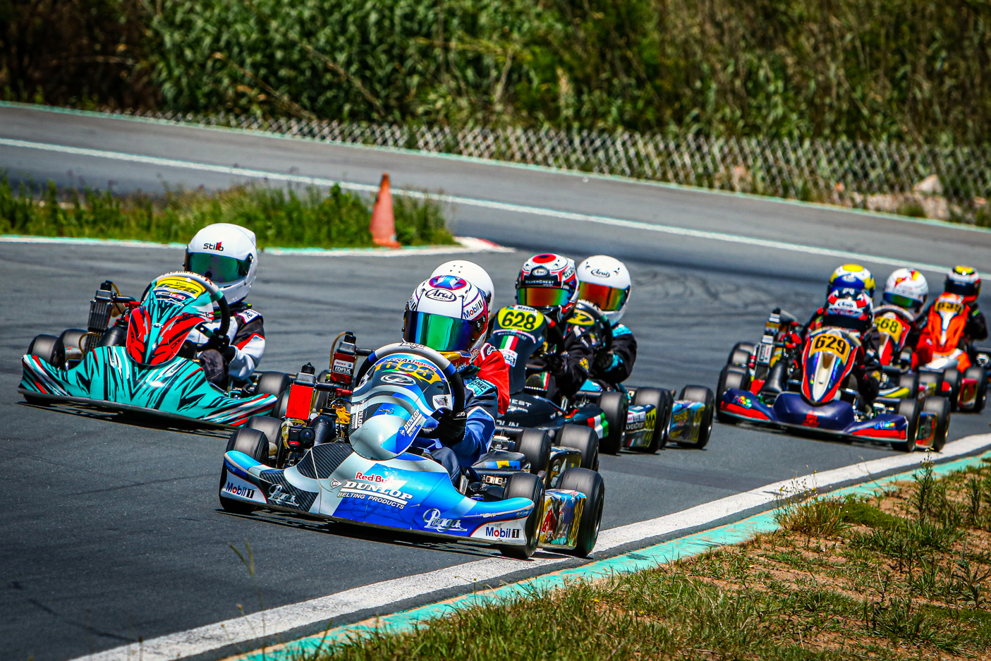 Kian Grottis led Olerato Sekudu and Ethan Bostander home in all three Senior Max races ahead of a spat between Roshaan Goodman, Ryan Wustmann and Conner Le Roux. Jayden Goosen won the opening two high school Junior Max races to take the day from KC Ensor-Smith, who spent the day in second place, and third race winner Moosa Kajee. Mini Max graduate Erich Heystek ended fourth after a day long spat with Nicolaos Vostanis and Karabo Malemela.