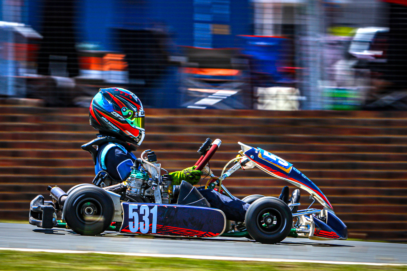 Brodi Dowling had a perfect day in baby Bambinos, with a triple victory over Matthew Shuttleworth each time. The consistent Diego Antunes made three fourth places into third for the day, ahead of Kayde Cornofsky, Santi Frade and Andoni Pinto, who shared out the fourths to finish ahead of Noah Cronje. Underweight penalties turned the FK shifter result on its head as David Hollis won overall from Ian Basson, Jarryd Wray, Albert Mans and Megan Verlaque.