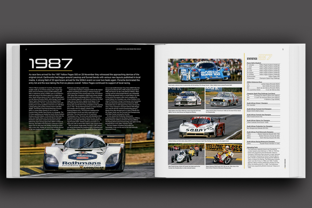 From there, it takes the reader on an incredible photographic journey of Kyalami Grand Prix Circuit history.